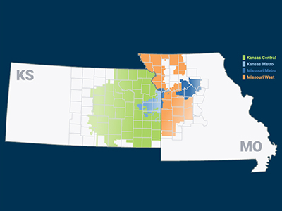 We keep the lights on for more than 1.7 million customers in Kansas and Missouri, across 316 miles west to east and 325 miles north to south and through four service areas.